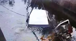 Motorista perde controle e carro cai dentro de canal em Praia Grande.