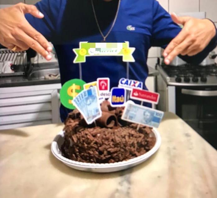 Os policiais também localizaram fotografias de documentos de diversas pessoas, e ainda uma foto do investigado com um bolo de aniversário enfeitado com logotipos de diversos bancos e dinheiro, utilizando-se de deboche com relação aos crimes.