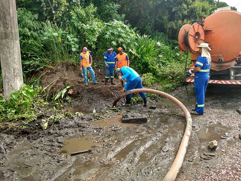 Além disso, outro importante trabalho de desobstrução para escoamento de água acontece na Rua Antônio Victor Lopes, Vila Ema.