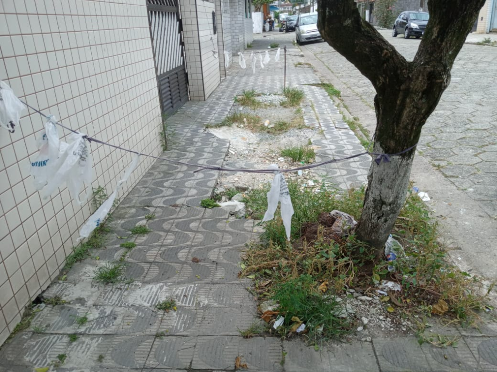 Senhora de 73 anos cai em calçada quebrada e se machuca em São Vicente