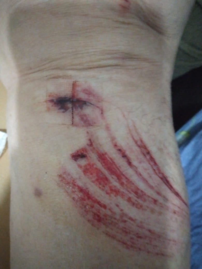 Uma senhora de 73 anos se machucou após cair em uma calçada na Rua 13 de Maio, na altura do número 632 no Centro de São Vicente. O acidente aconteceu nesta terça-feira (09) pela manhã. Marisa Pina sofreu alguns cortes no pulso e na mão.