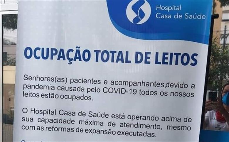 No aviso, a Casa de Saúde informa que todos os leitos estão ocupados por conta da pandemia de covid-19, e pede aos pacientes que se dirijam a outros serviços de saúde indicados pelos respectivos convênios.