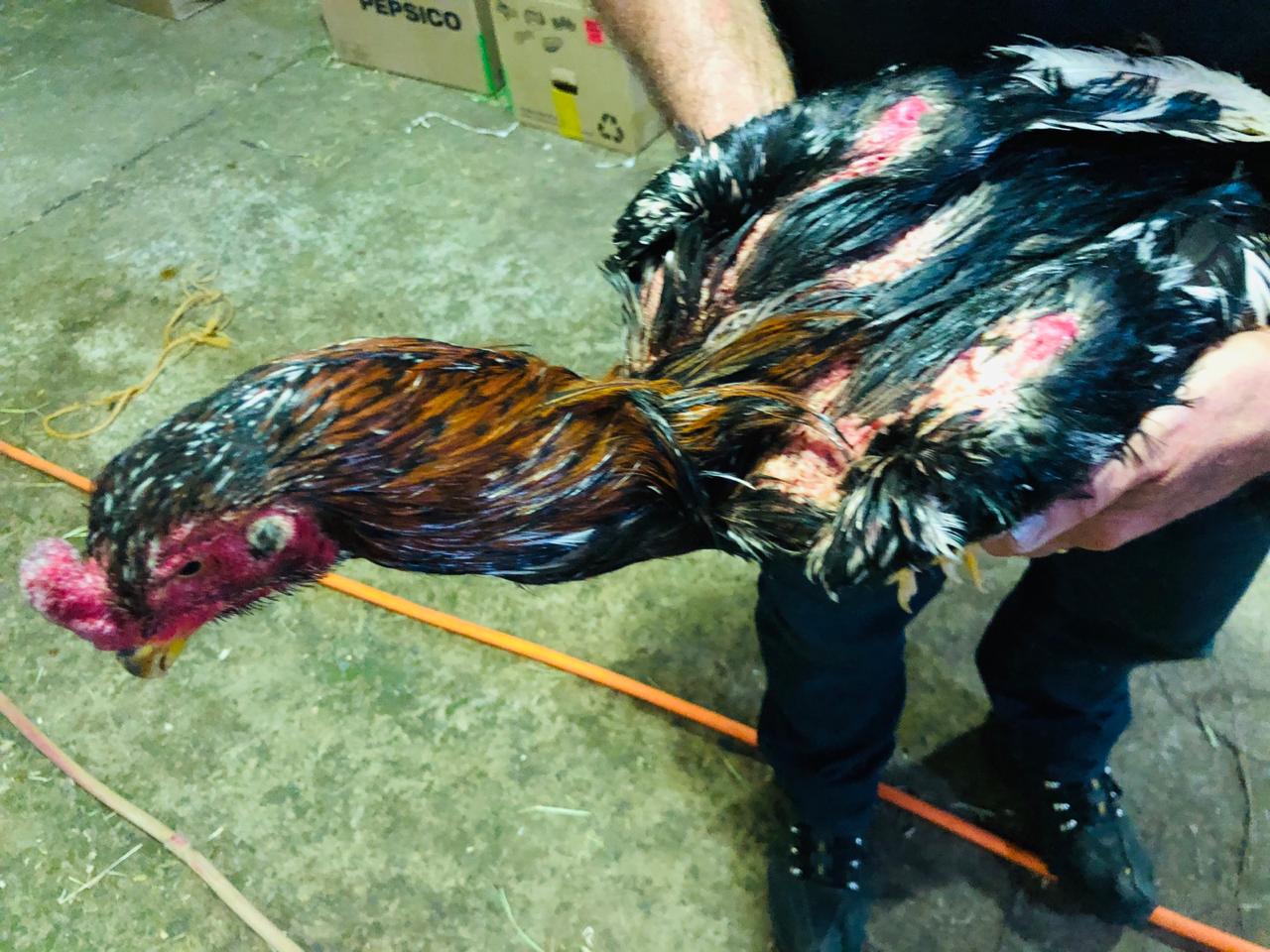 No local do crime, foram localizados 84 galos, vários deles com suas esporas cortadas, um ferido devido à rinha e três ringues, sendo dois feitos de madeira e um de alvenaria. Além disso, os agentes encontraram diversos materiais utilizados na prática da rinha.