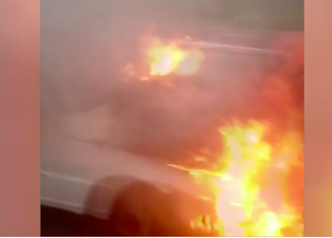 Na manhã desta quinta-feira (2), um carro ficou destruído pelo fogo, em Praia Grande, na baixada santista.
