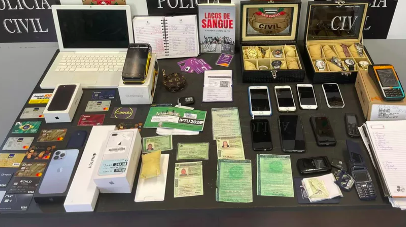 Durante as buscas foram apreendidos diversos documentos que comprovam o envolvimento deles com organização criminosa, como diversos documentos falsificados, máquinas de cartão, cartões de crédito, notebooks e até mesmo várias anotações de contabilidade do tráfico de drogas.