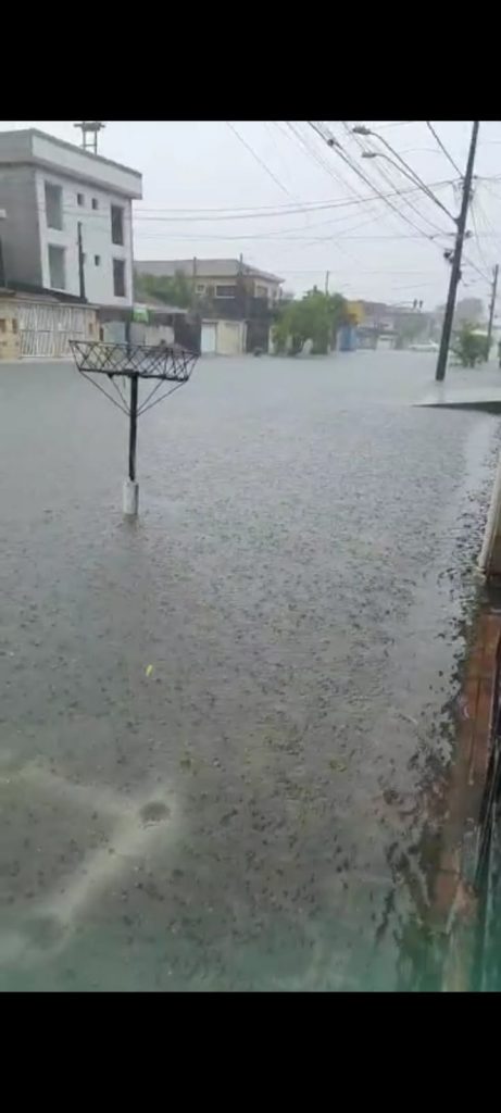 Chuva forte que se iniciou na manhã desta sexta-feira atingiu vários bairros de São Vicente.