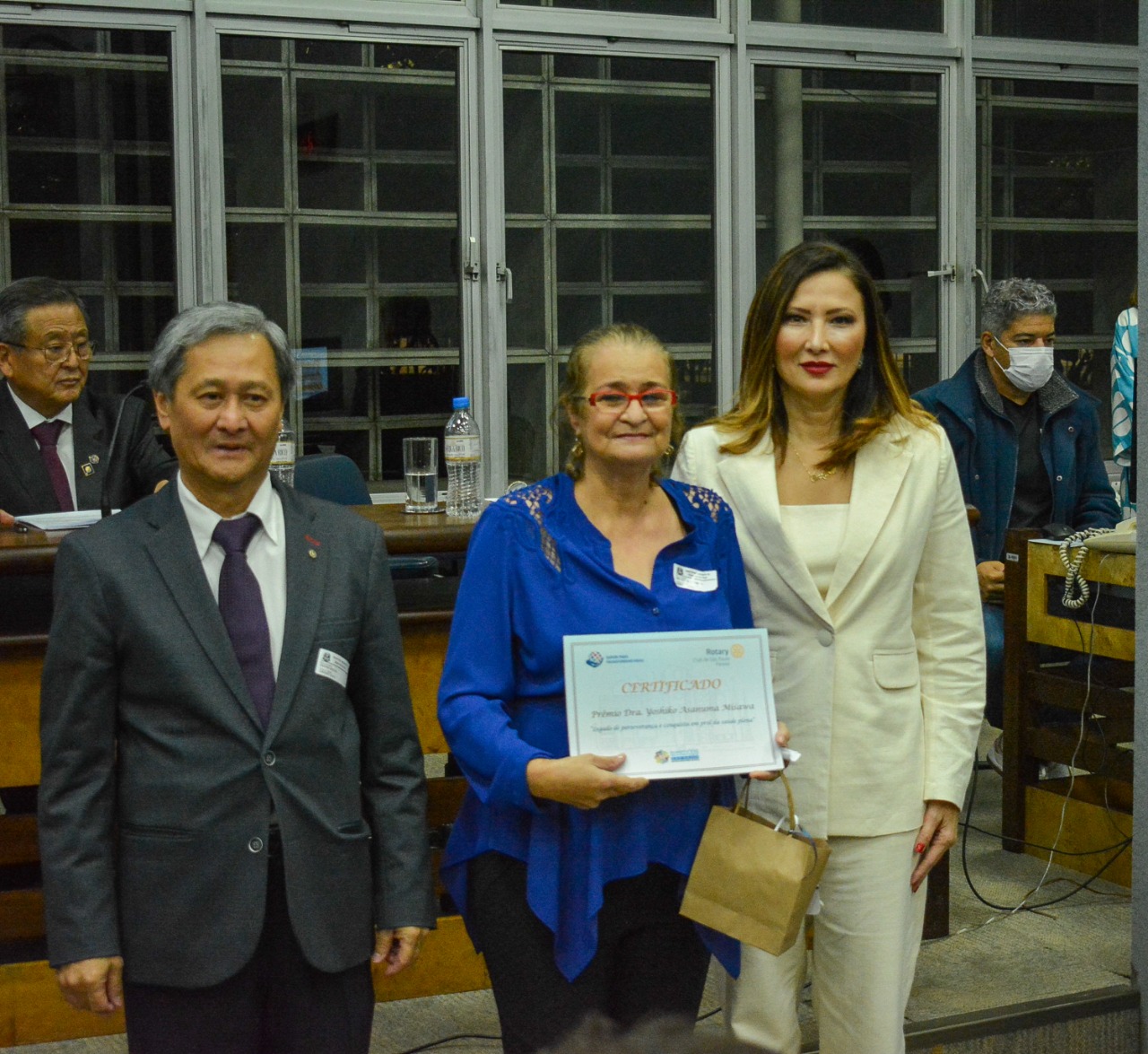 A delegada Raquel Kobashi Gallinati, presidente do Sindicato dos Delegados de Polícia do Estado de São Paulo, participou da noite de quinta-feira do 2º Prêmio doutora Yoshiko Asanuma Misawa, com o tema “Legado de perseverança e conquista em prol da saúde plena”, realizado pelo Rotary Clube de São Paulo Paraíso, na Assembleia Legislativa.