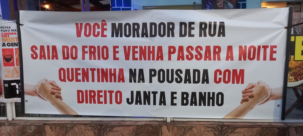 Faixa estendida na frente da Pousada para convocar os moradores de rua