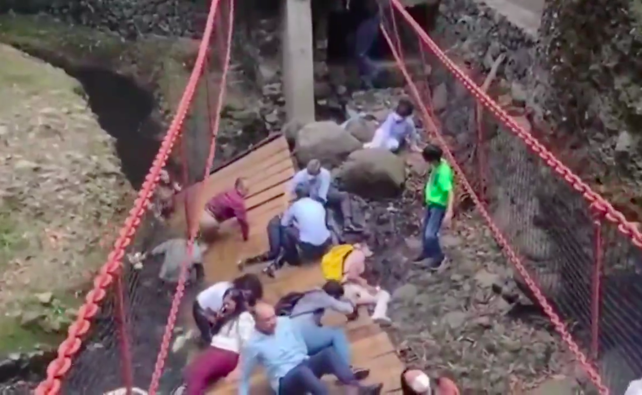 Uma ponte suspensa caiu durante cerimônia com presença do prefeito na cidade de Cuernavaca, no México.