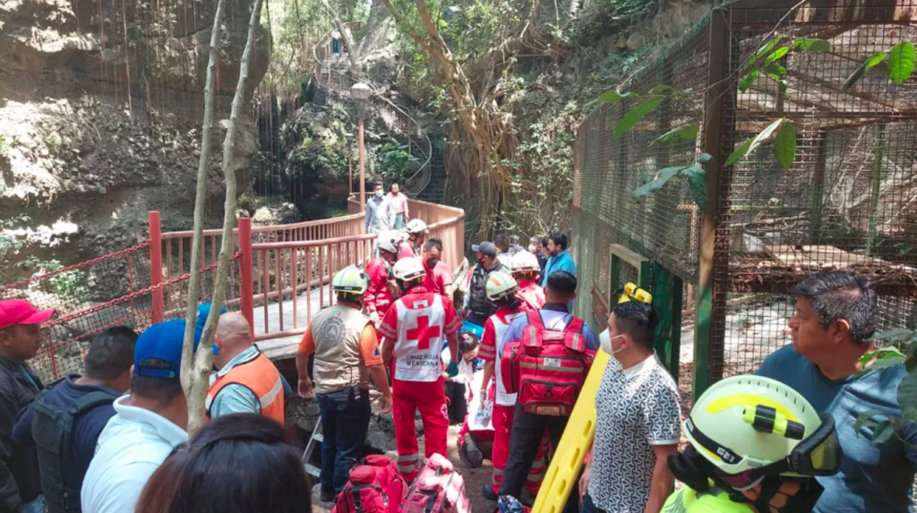 “Paseo Ribereño” é o nome de um trajeto em passarela suspensa que liga o Parque Porifirio Diaz a uma rua local. Um dos rios dessa atração turística passa embaixo da ponte que caiu.
