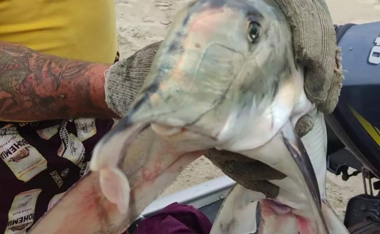 Nesta sexta-feira (10), um peixe-elefante (Callorhinchus callorhynchus) foi encontrado morto por um pescador na praia do Ocian em Praia Grande. O animal vive no fundo do mar e dificilmente sobe até a superfície, sendo considerado raríssimo.