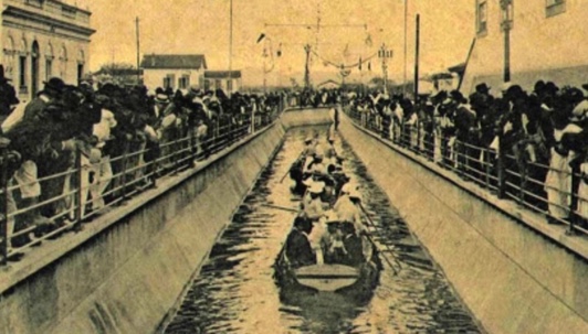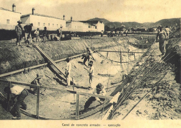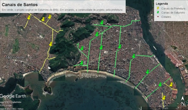 Em 1905, Saturnino de Brito implantou um plano de saneamento, cuja intenção era a implementação de canais de drenagem para dar suporte aos emissários de esgoto de Santos. O projeto consistia, basicamente, em separar as águas de rios e córregos do esgoto.