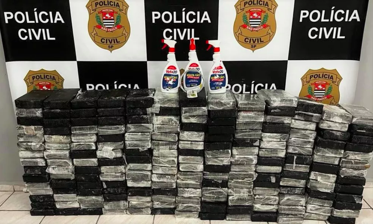 Policiais foram até o local e encontraram 11 suspeitos em situação de flagrante. Segundo a Polícia Civil, os carregamentos estavam com vários repelentes olfativos, que serviriam para atrapalhar a fiscalização de cães farejadores.
