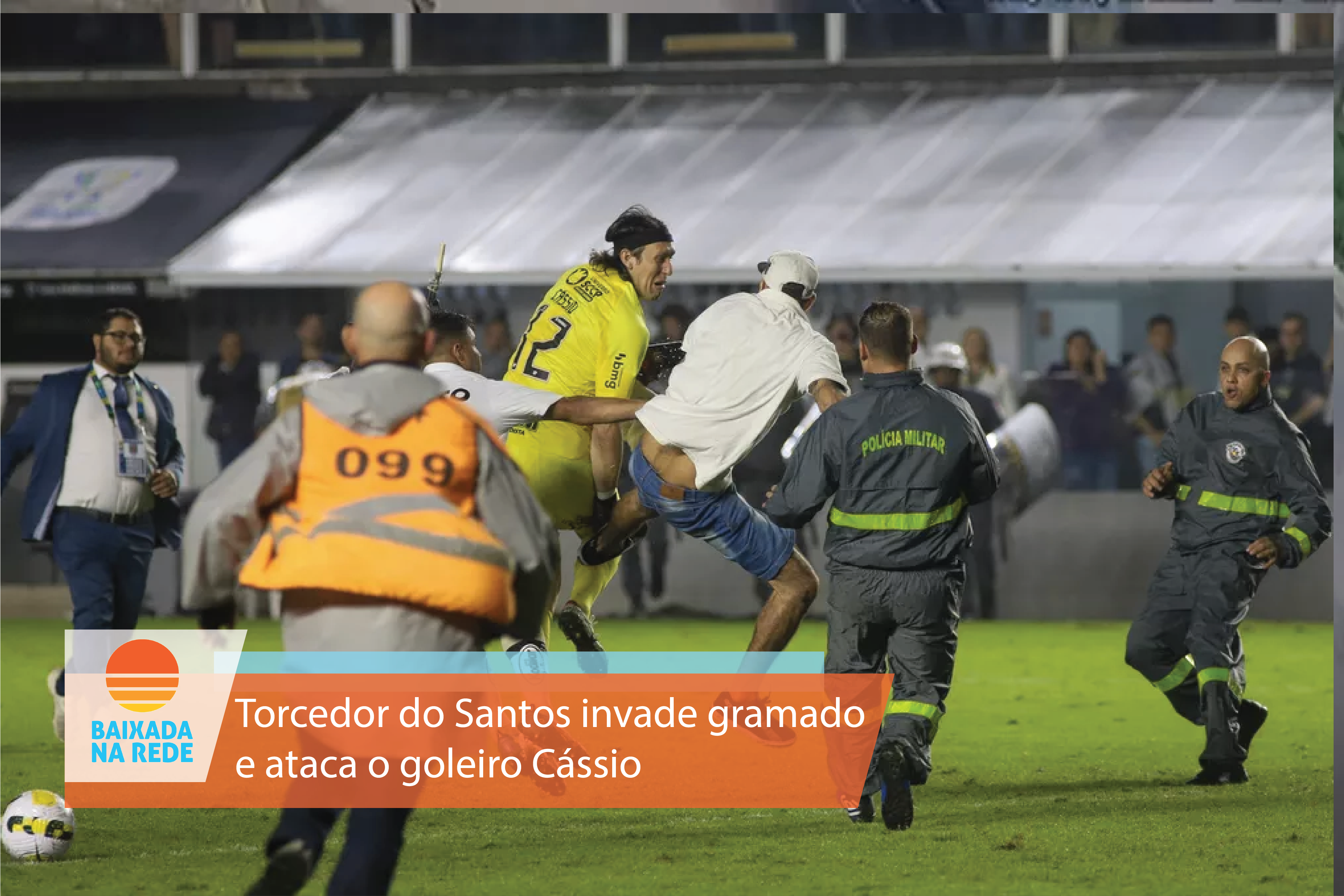 Um torcedor do Santos invadiu o gramado da Vila Belmiro e agrediu o goleiro Cássio, do Corinthians, nesta quarta-feira, após a partida entre os clubes pelas oitavas de final da Copa do Brasil. O Peixe venceu por 1 a 0, mas o Timão avançou.