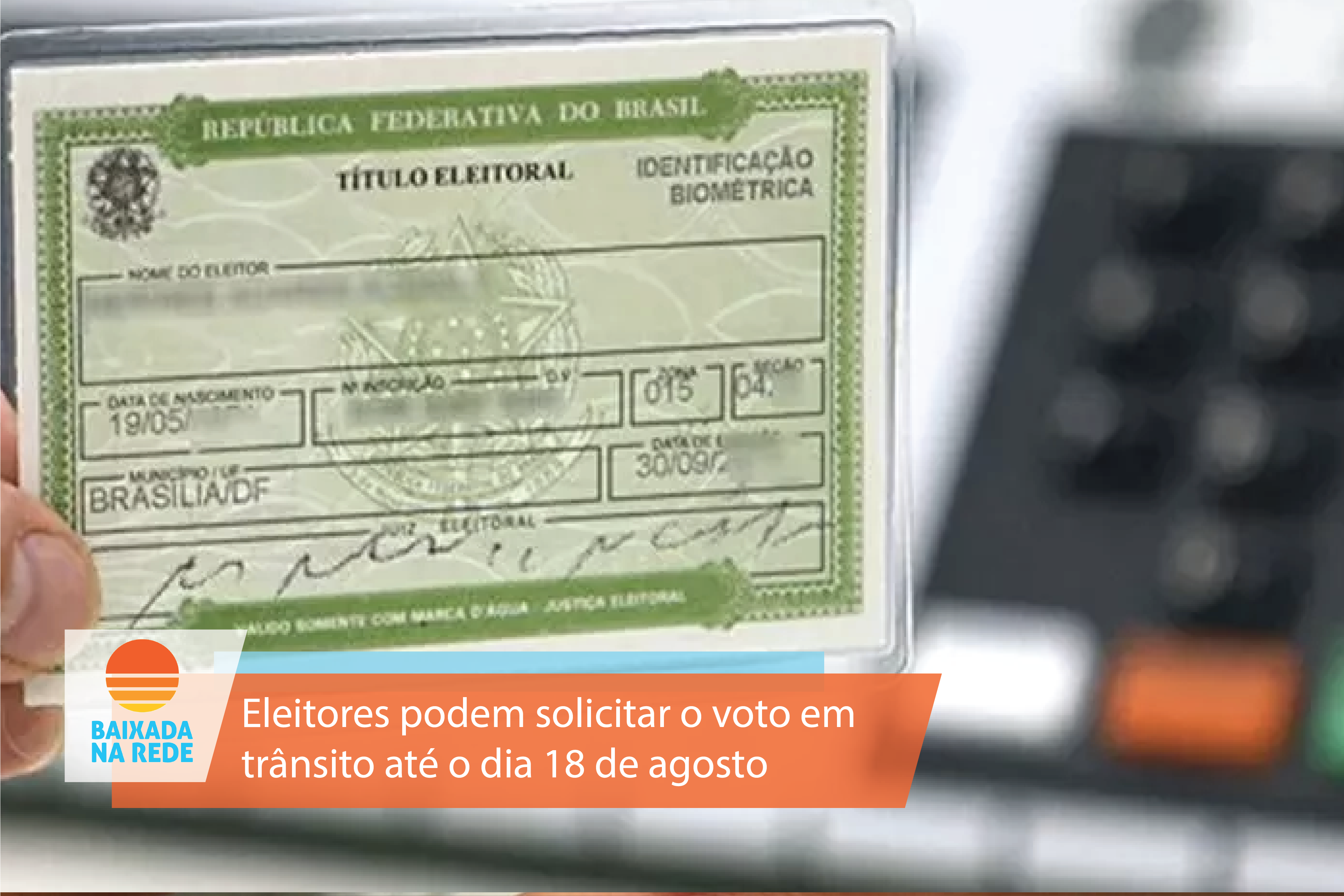 O eleitor poderá solicitar o voto em trânsito no cartório eleitoral, no período de 18 de julho a 18 de agosto. Quem já sabe que não estará no município onde vota na data das eleições, basta ir a um cartório eleitoral e indicar a cidade onde vai estar para não perder a oportunidade de participar do processo eleitoral. Essa possibilidade vale para municípios com mais de 100 mil eleitores.