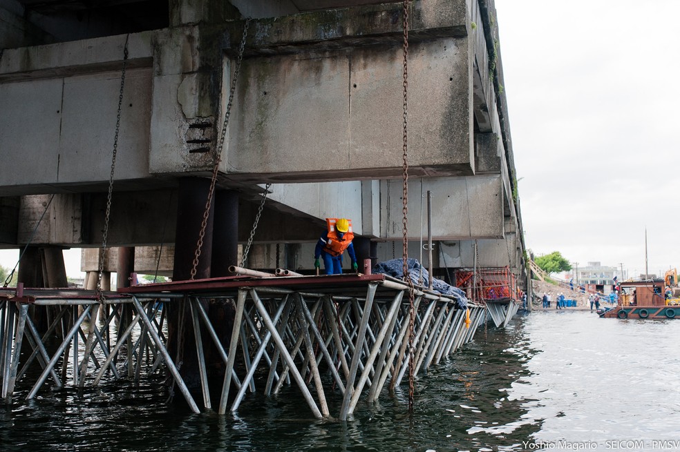 Na metade de setembro, os trabalhadores contratados da Jatobeton, empresa responsável pela obra, iniciaram os reparos em todas as estacas, transversinas, longarinas, New Jersey, juntas de dilatação e guarda-corpo da ponte, serviços realizados em diversas frentes de trabalho.