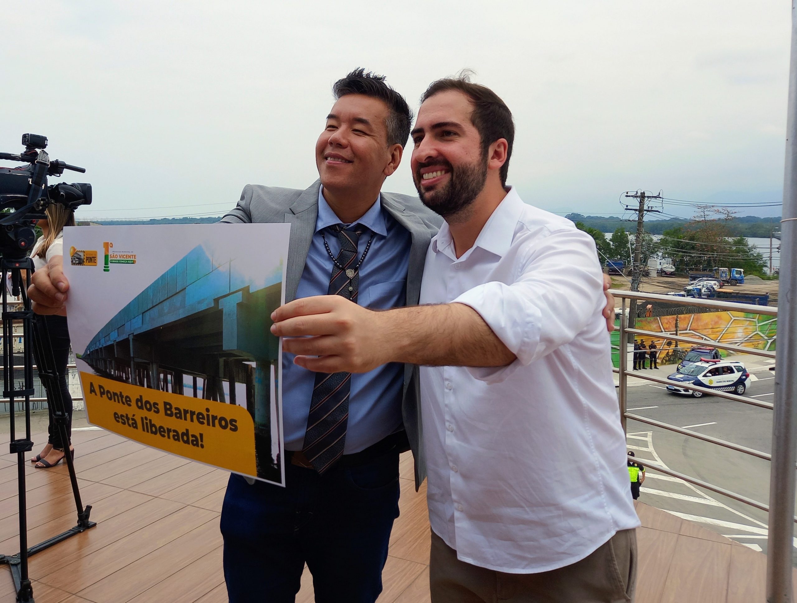 Hoje pela manhã foi reinaugurada a Ponte dos Barreiros que liga a área Insular com a área Continental de São Vicente. Estiveram presentes o prefeito Kayo Amado, secretários de governo, vereadores da cidade e autoridades civis e militares.