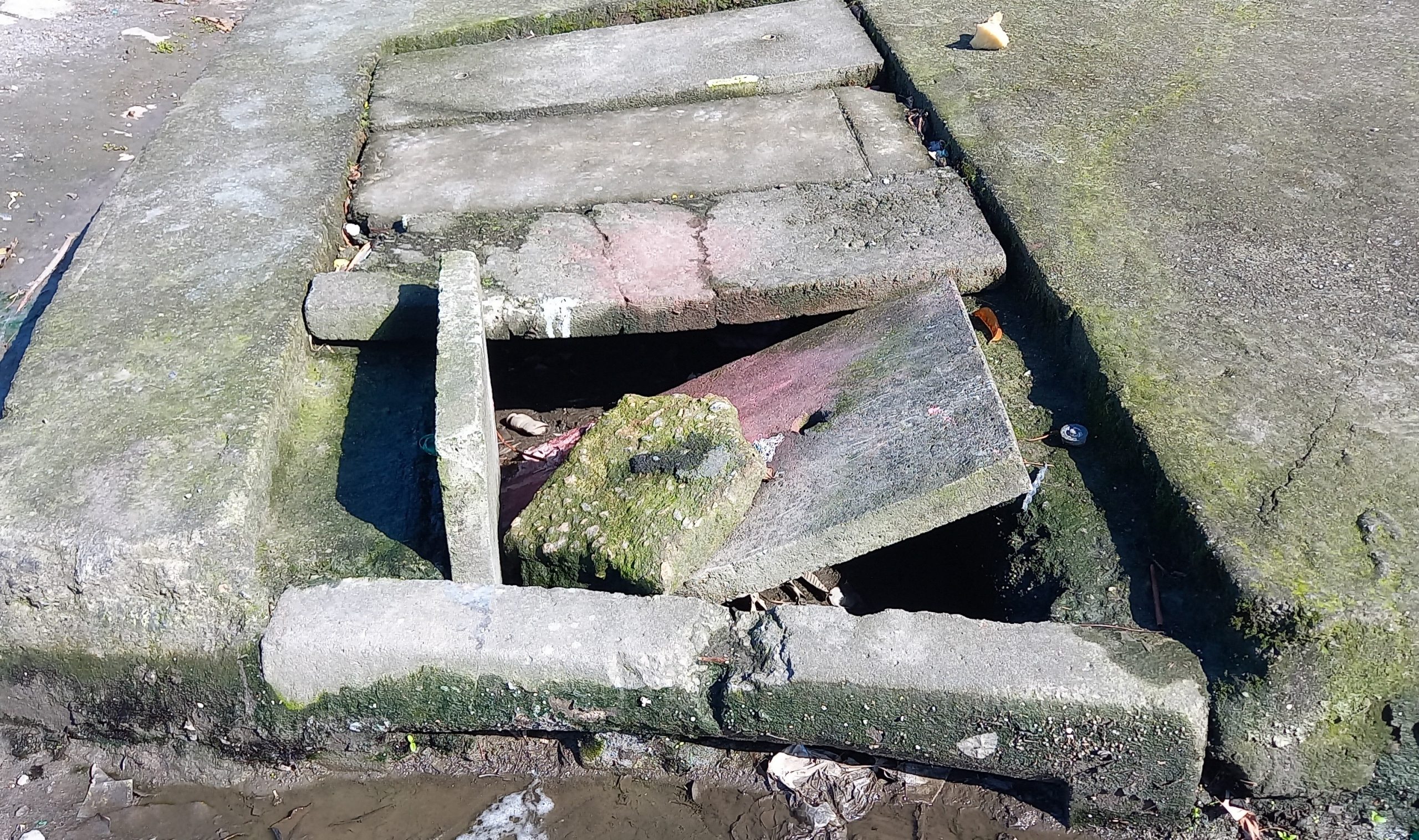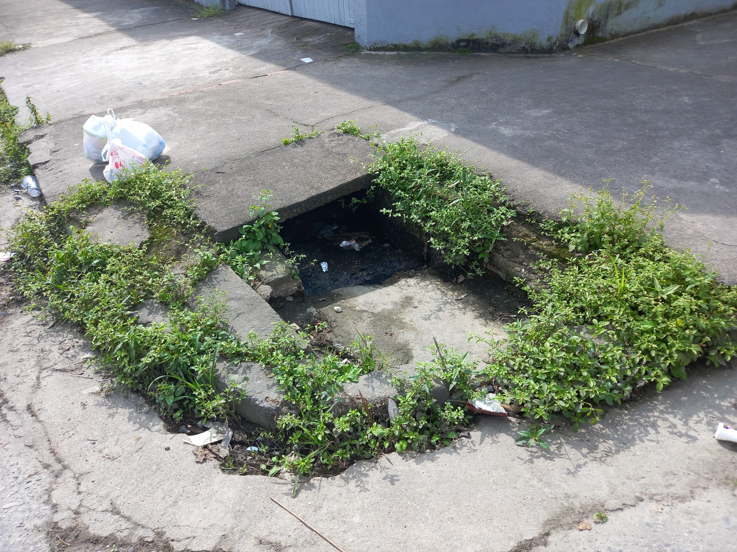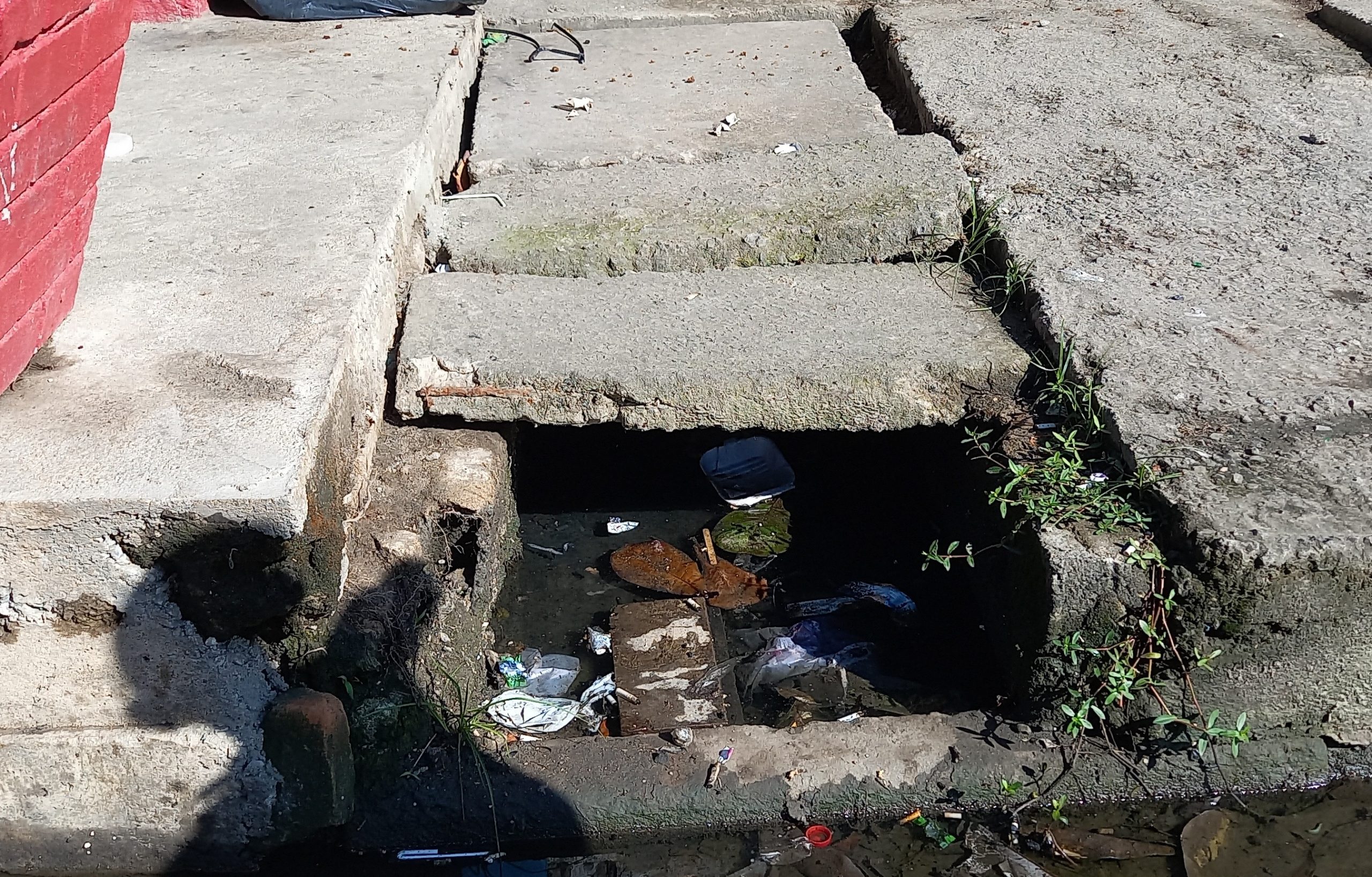 Outro problema frequente são as tampas quebradas ou danificadas de galeria pluvial. Em muitos casos são danificadas pelo trafego de caminhões e ônibus que invadem a calçada e danificam a tampa e a caixa da galeria pluvial.
