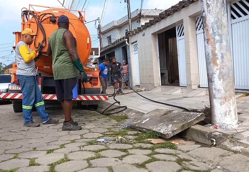 A prefeitura de São Vicente tem 3 equipes que circulam diariamente pela cidade para dar conta da limpeza das galerias, a demanda é alta e o tempo de trabalho depende muito do estado em que a galeria se encontra. A maré e os canais obstruídos também são um problema grande que faz com que muitas vezes haja o retorno da “agua” pela galeria pluvial inundando a rua mesmo sem a ocorrência de chuva.