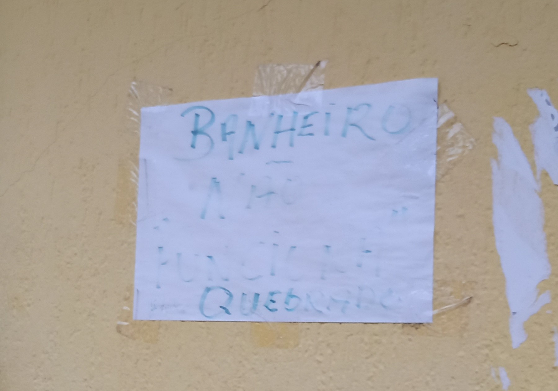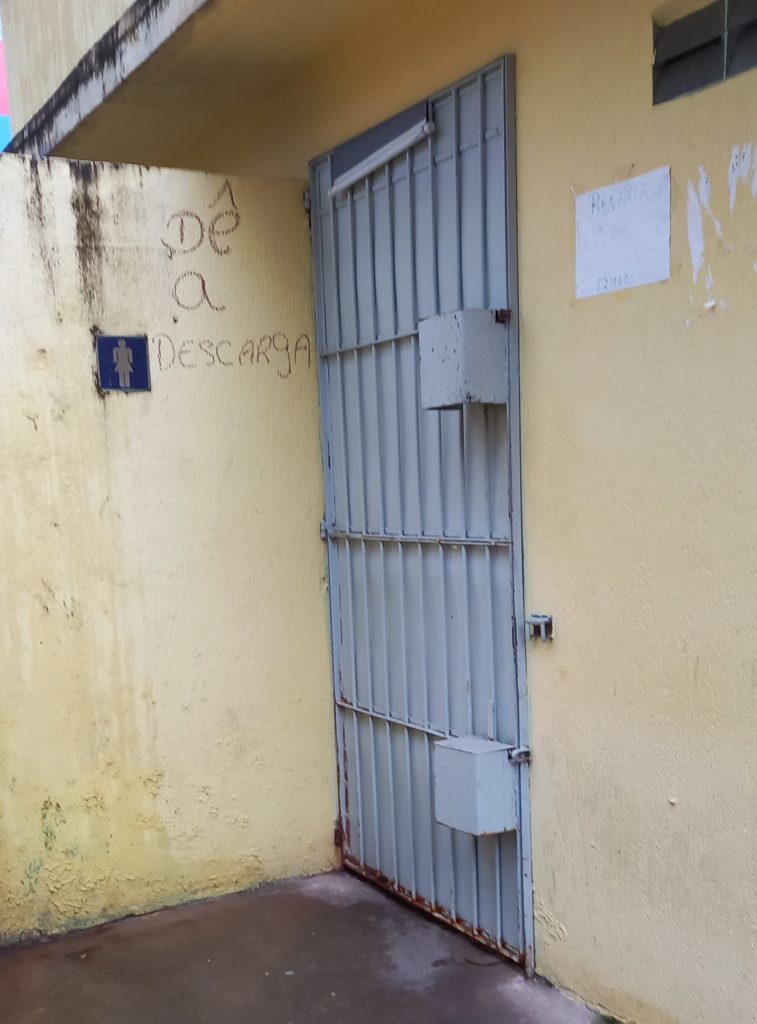 O cheiro de urina é constante no banheiro, pois sem materiais de limpeza não tem como deixar um banheiro limpo e desinfetado.