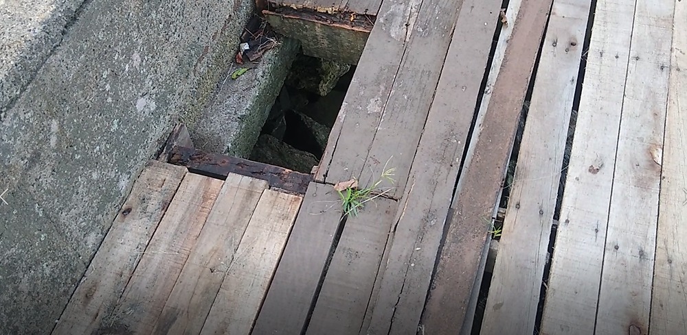 Em um trecho a degradação é ainda maior, com a destruição de uma parte do guarda-corpo, que também foi projetado em madeira, preso a estacas de concreto. Em alguns pontos, os pregos que prendem as tábuas do piso estão salientes e também oferecem perigo. O problema se estende até a parte de areia da Praia da Biquinha.
