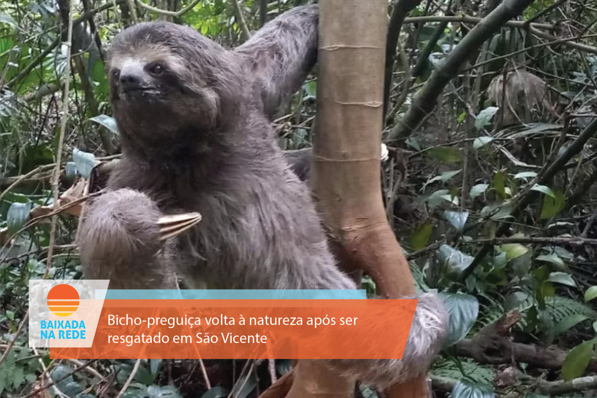 Um bicho-preguiça (Bratypus variegatus) foi resgatado por guardas ambientais no bairro Vila Valença, em São Vicente. Ele não estava ferido e foi devolvido à natureza.