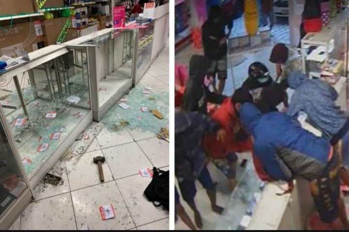 Dentro da loja, eles renderam sete funcionários e, na sequência, usaram martelos para quebrar os balcões de vidro e roubar os celulares.