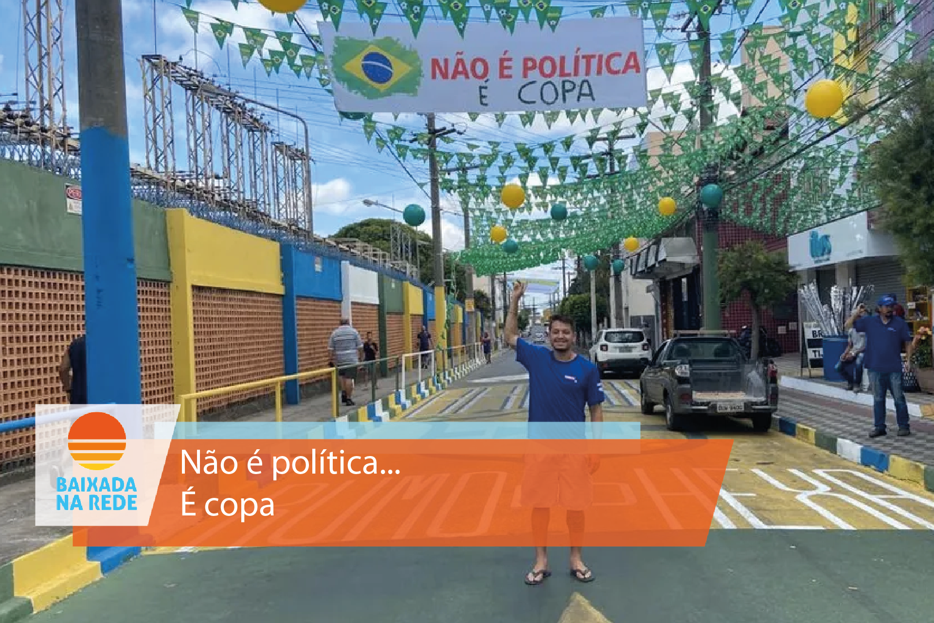 Neste ano, porém, um novo adereço foi colocado. Trata-se de uma faixa com os dizeres “Não é política, é copa”. O objetivo é dissociar os assuntos, já que, pela primeira vez, a Copa do Mundo será realizada após as eleições.