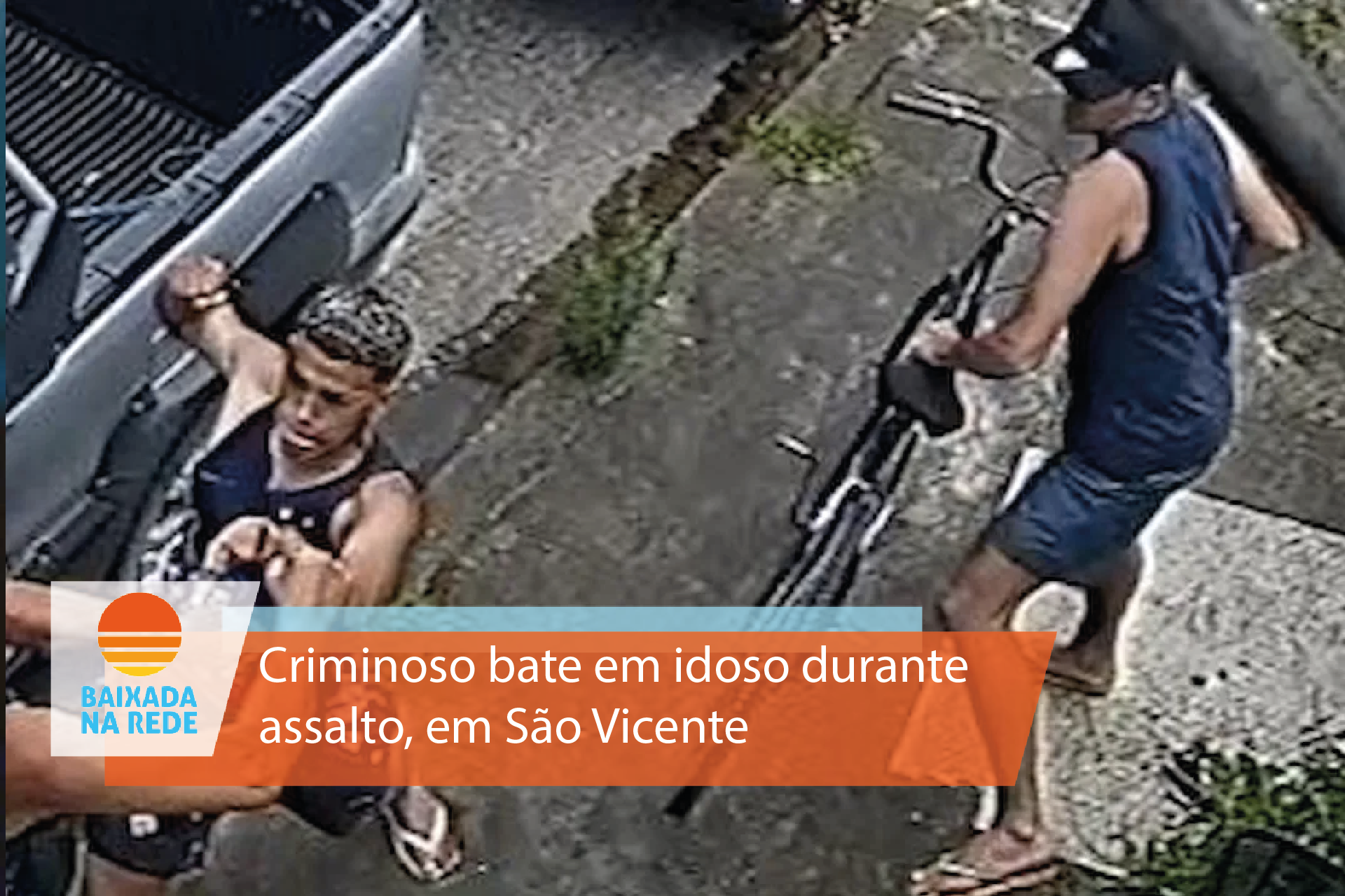 Uma câmera de monitoramento flagou bandidos socando um idoso durante assalto em São Vicente, na Baixada Santista.