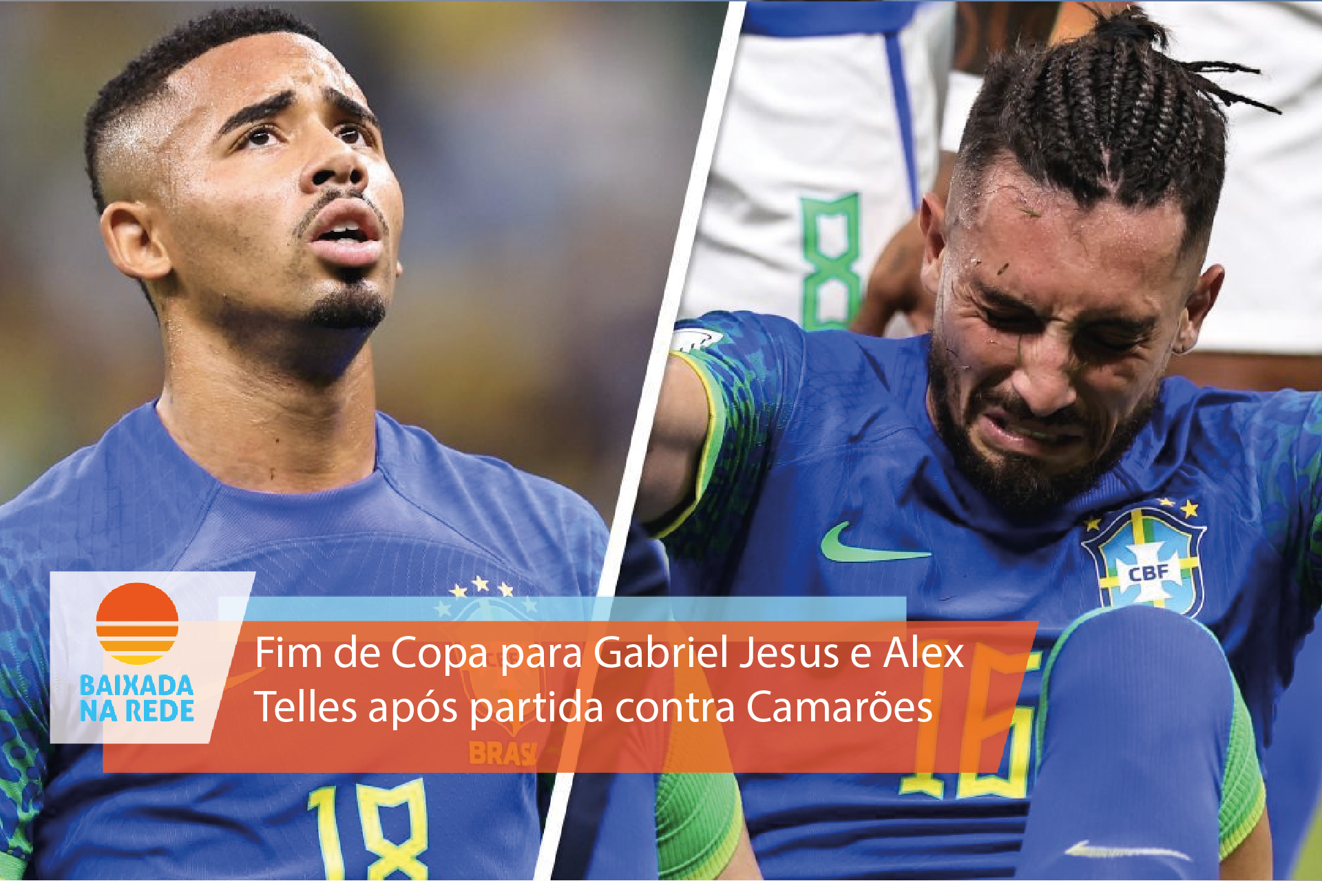 O atacante Gabriel Jesus e o lateral-esquerdo Alex Telles estão fora da Copa do Mundo 2022. Exames constataram lesões no joelho direito de ambos os jogadores, após a derrota para Camarões, na sexta-feira (2). A seleção brasileira não pode convocar substitutos para eles, pois o prazo se encerrou 24 horas antes da estreia no torneio.