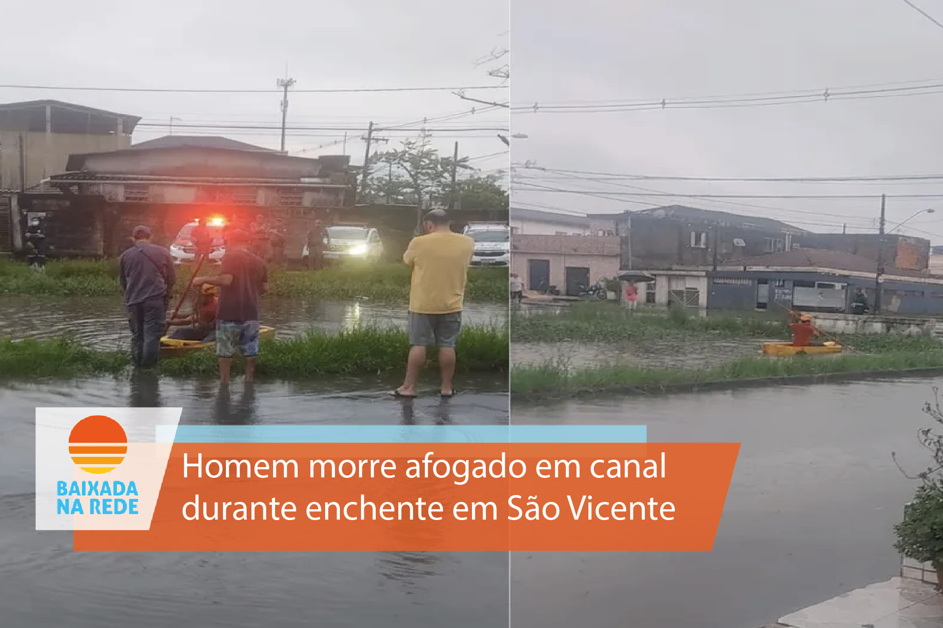 Um homem, que não teve a identidade revelada, morreu afogado ao tentar salvar um cachorro durante uma enchente em São Vicente, na Baixada Santista.