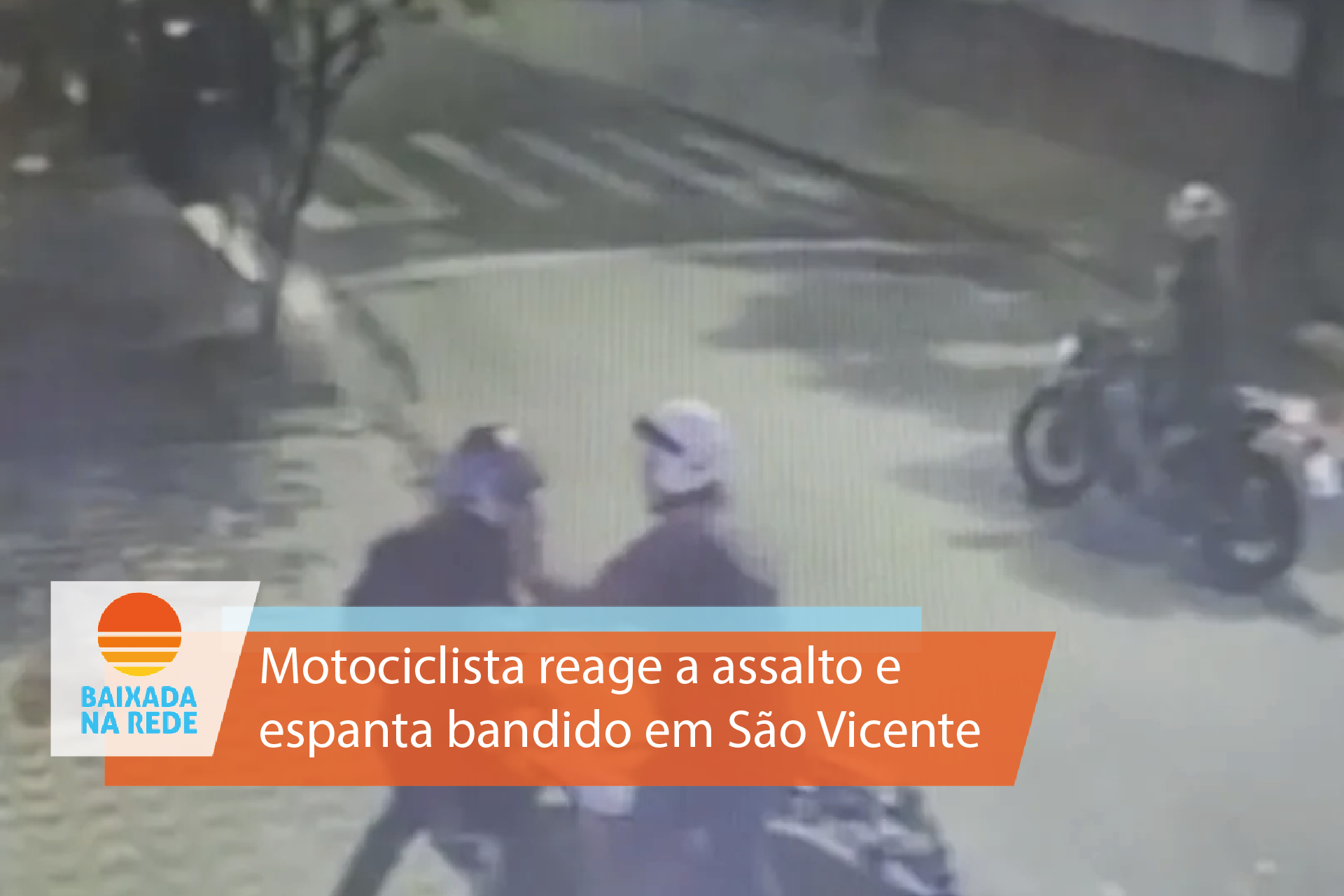 Um motociclista se revoltou e acertou uma capacetada em um bandido para se livrar de uma tentativa de assalto em São Vicente, na Baixada Santista.