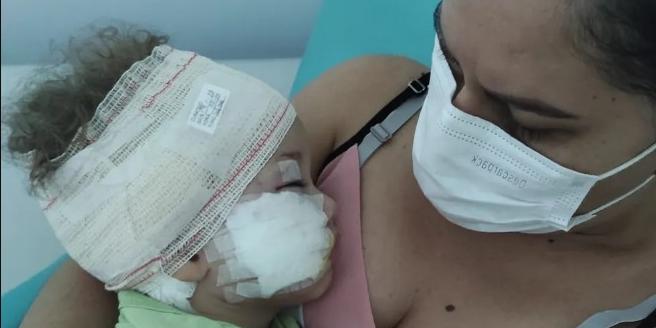 A mordida rasgou parte da orelha do bebê e o deixou com a bochecha dilacerada. Théo precisou passar por uma cirurgia que custou mais de R$ 6 mil à família, mas se recupera bem.