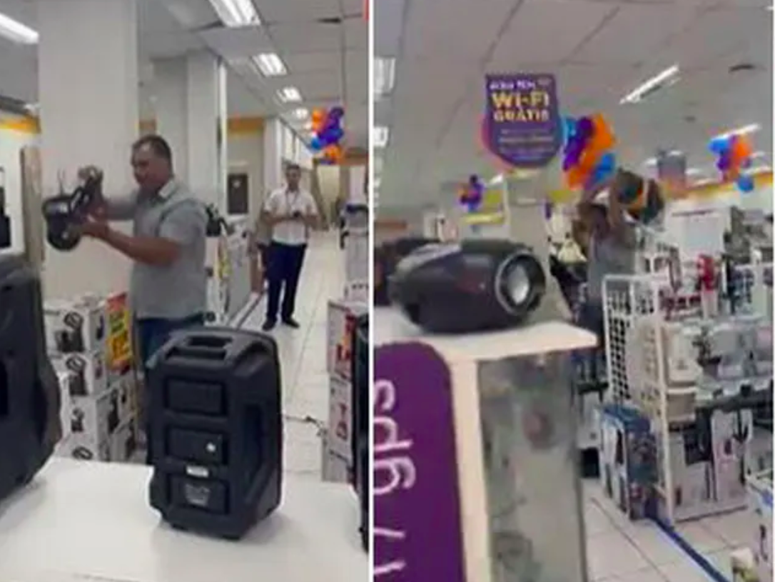 Segundo a Polícia Militar, Antônio Daniel Patrício quebrou vários eletrodomésticos. O homem tentou trocar uma caixa de som, mas se revoltou após ser informado de que o prazo de troca havia expirado há uma semana.
