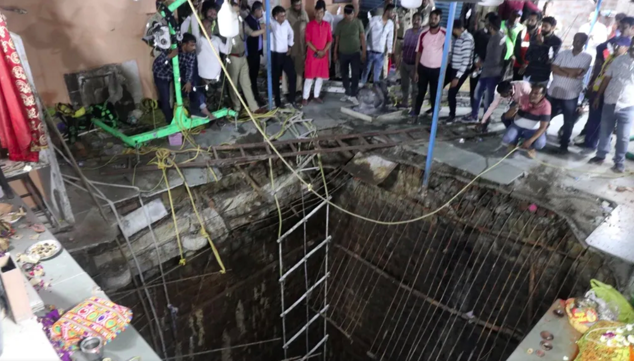 Parte do chão de um templo antigo desabou em uma cidade no centro da Índia nesta quinta-feira (30), deixando 13 pessoas mortas.