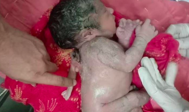 Imagens divulgadas nas redes sociais mostram o bebê deitado, chorando, e ainda com o cordão umbilical preso ao corpo, indicando que ele havia acabado de nascer. O nome, sexo e método de parto da criança não foram divulgados.