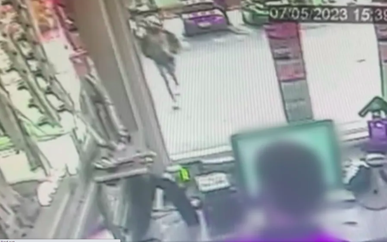 Nas imagens, um dos criminosos aborda a vítima dá um soco nela e aponta para o caixa. Em seguida, o comparsa chega armado, dispara sem acertar a vítima. Ambos arrancam a gaveta do caixa e fogem.