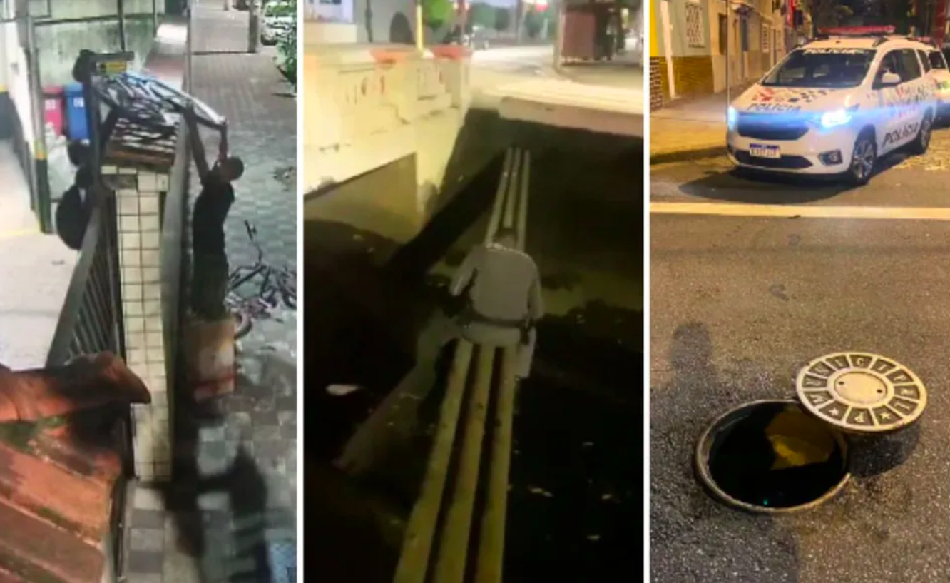 A Polícia Militar prendeu em flagrante um homem, de 32 anos, após o criminoso ter furtado uma bicicletas da garagem de um prédio, em Santos, na Baixada Santista. O suspeito foi perseguido por uma equipe da PM e chegou a pular em um dos canais da cidade para se esconder. Ele acessou a tubulação e acabou detido após sair por um bueiro.