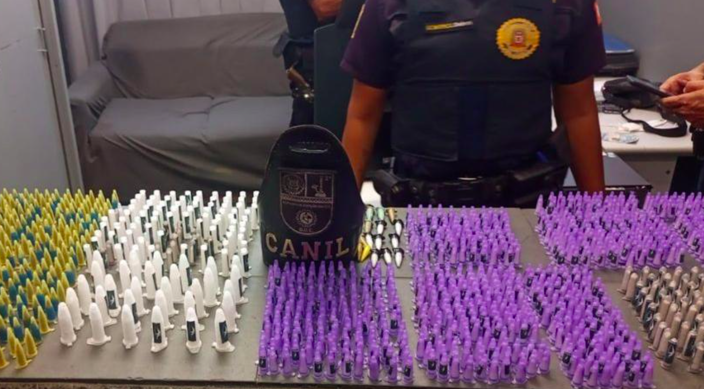 Foram achados no local 885 porções de maconha e 207 do tipo ‘K2’, 1.199 de cocaína e 61 de crack. Além disso, foi encontrado dinheiro em espécie no valor de R$ 594,30.