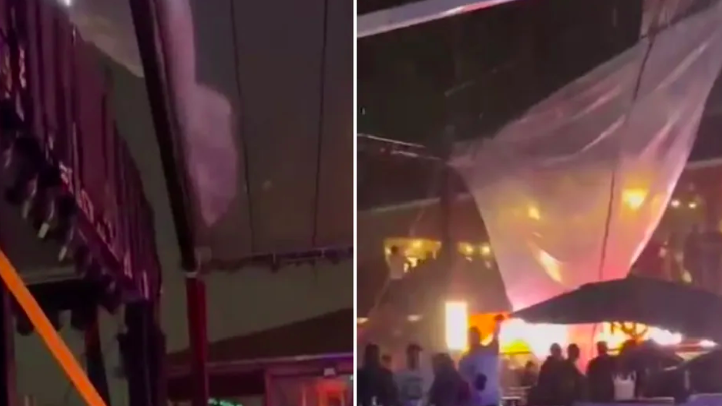 Parte da estrutura montada na casa de eventos Rocket Sea Clube caiu, na noite de domingo (28), em São Vicente, na Baixada Santista. O local iria receber o show do grupo Sorriso Maroto, que precisou ser adiado. Segundo o estabelecimento, o incidente foi por conta da chuva que atingiu a região. Ninguém ficou ferido.