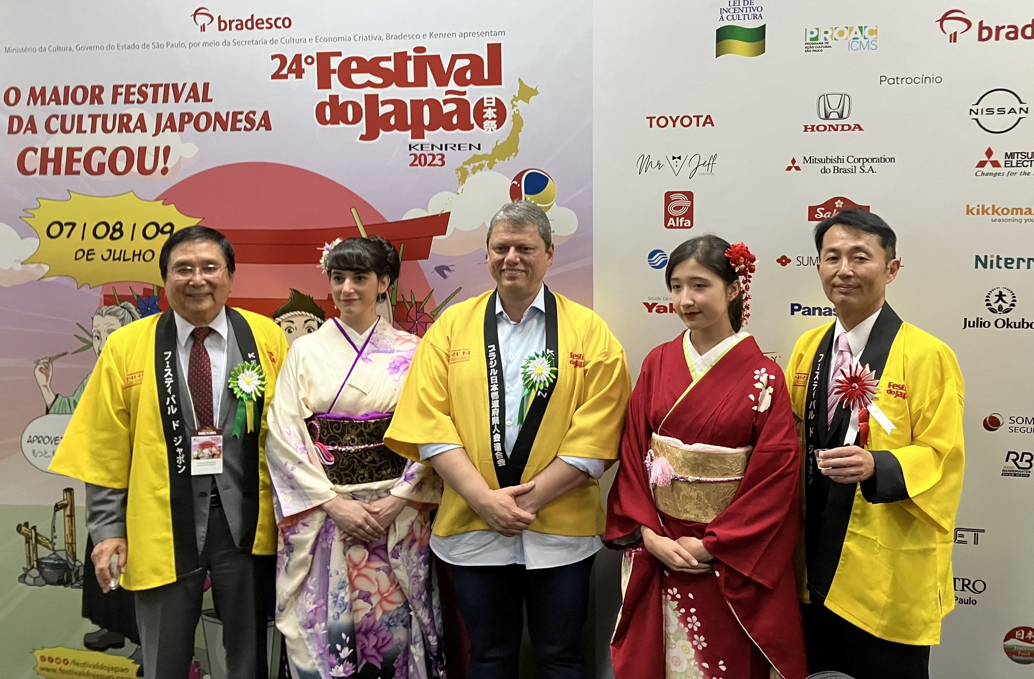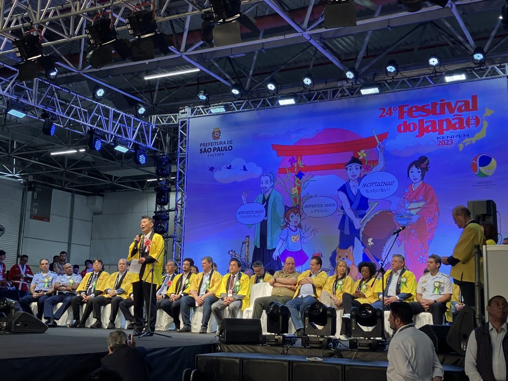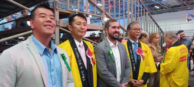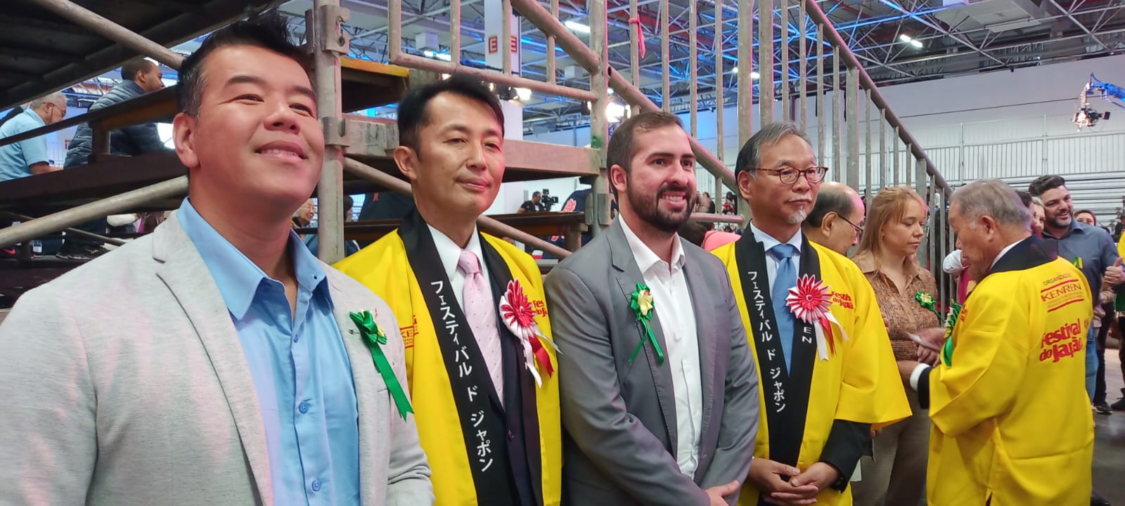 O governador do Estado de São Paulo Tarcísio de Freitas chegou ao evento acompanhado do ministro Gilberto Kassab e foi recepcionado por autoridades, dentre elas o Presidente do Kenren Toshio Ichikawa, o vereador de São Paulo Aurélio Nomura, o vereador de São Vicente Jhony Sasaki e o prefeito Kayo Amado.