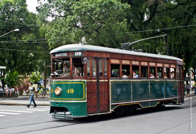 Os ingressos para o passeio de bonde pelo Centro Histórico são vendidos na bilheteria do Museu Pelé (Largo Marquês de Monte Alegre s/nº, Valongo).