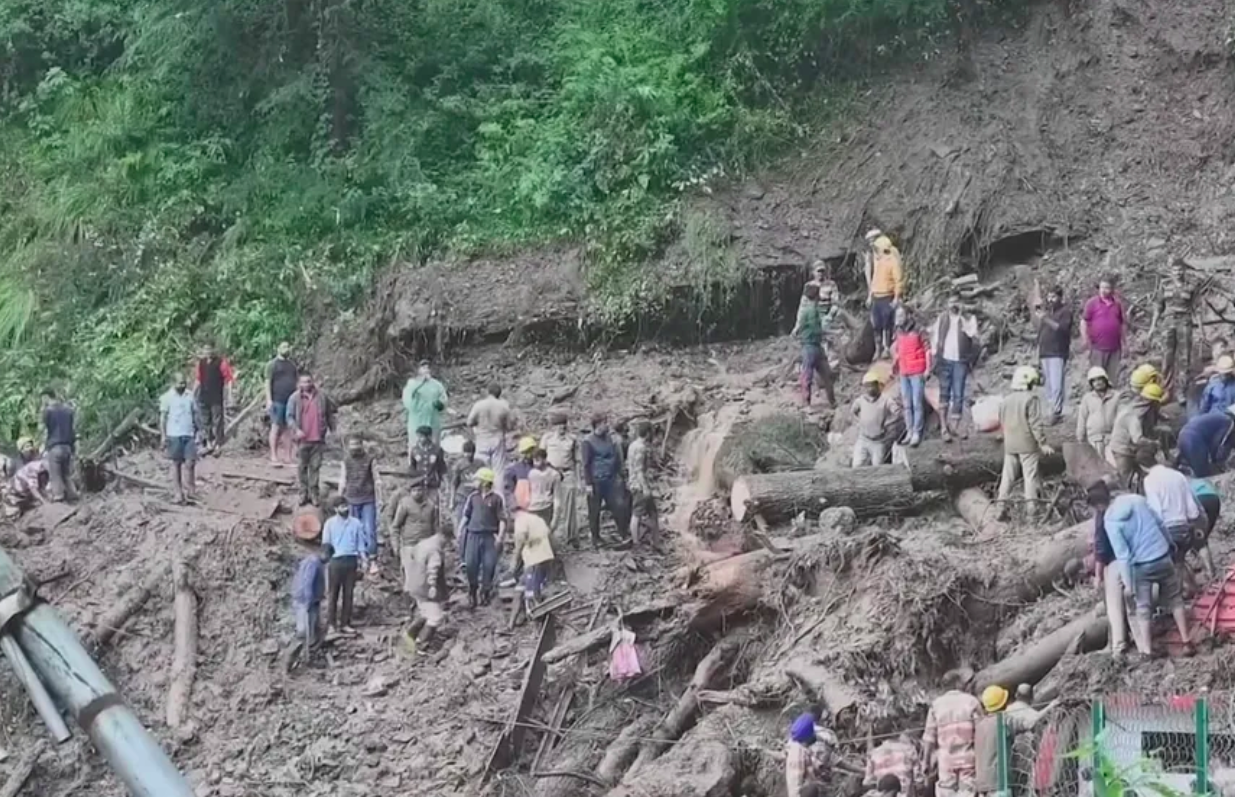 Equipes de resgate estão procurando por sobreviventes no meio da lama, no estado de Himachal Pradesh, no norte do país.