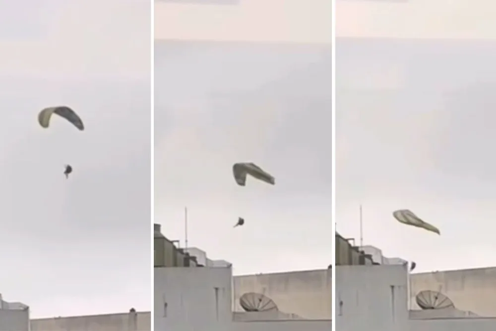 recentemente um piloto de parapente caiu em uma garagem de um edifício localizado em Santos, no litoral de São Paulo. Nas imagens, que contêm cenas impactantes, é possível observar que o equipamento enfrentou dificuldades ainda no ar.