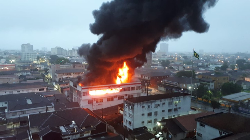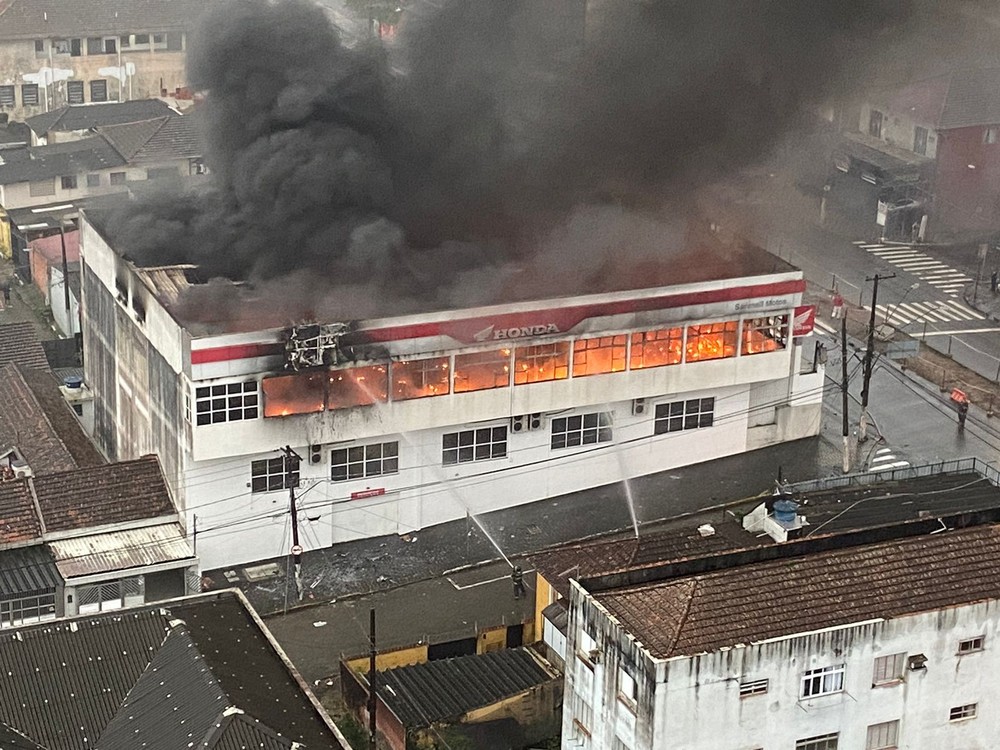 Um incêndio de grandes proporções afetou uma unidade da concessionária de motos Honda Sanmell, localizada na Vila Cascatinha, em São Vicente, no litoral de São Paulo.