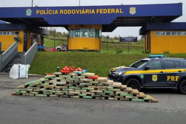 A Polícia Rodoviária Federal (PRF) apreendeu mais de uma tonelada de maconha na Rodovia Régis Bittencourt, no km 525 da rodovia, próximo a Barra do Turvo, no interior de São Paulo. A droga, composta por 80 fardos, foi encontrada escondida em um veículo, resultando na prisão em flagrante do motorista.