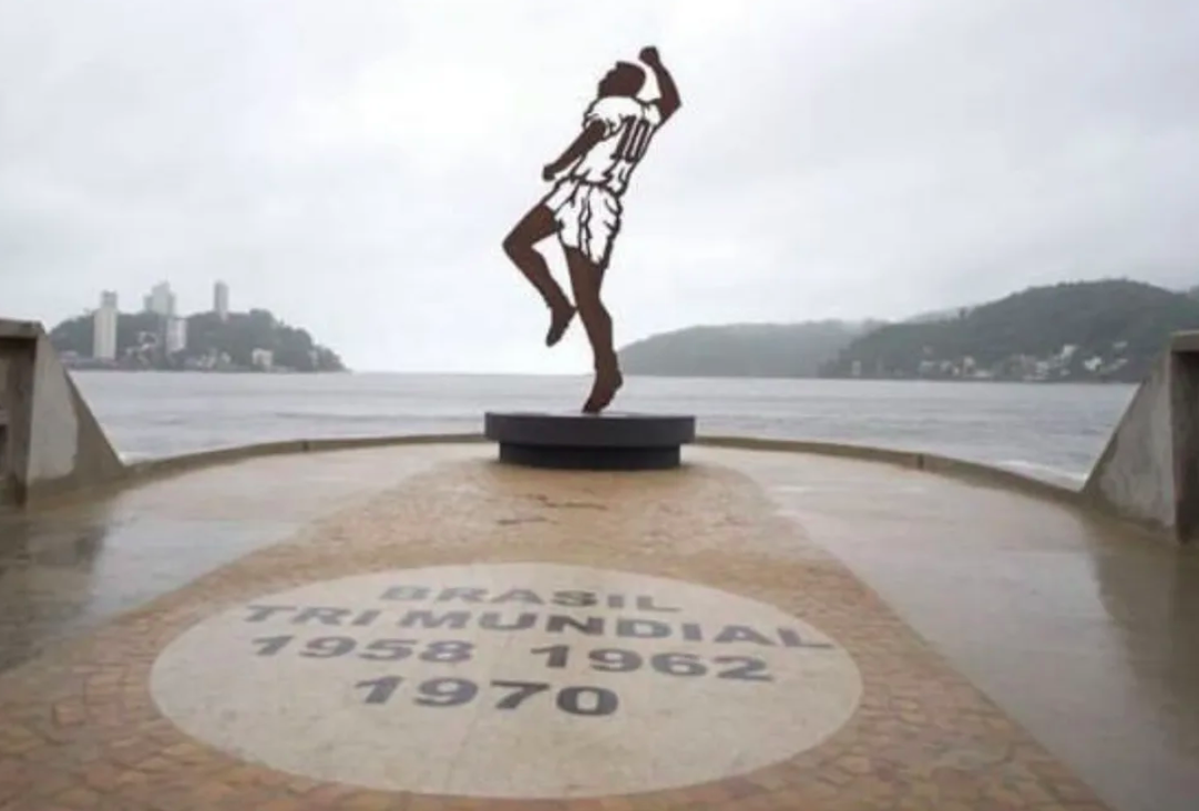 O novo ponto turístico da cidade, localizado na Orla do Gonzaguinha, conta com uma escultura da icônica comemoração do Rei do Futebol, o ‘soco no ar’, e um monumento do número 10 com uma coroa.