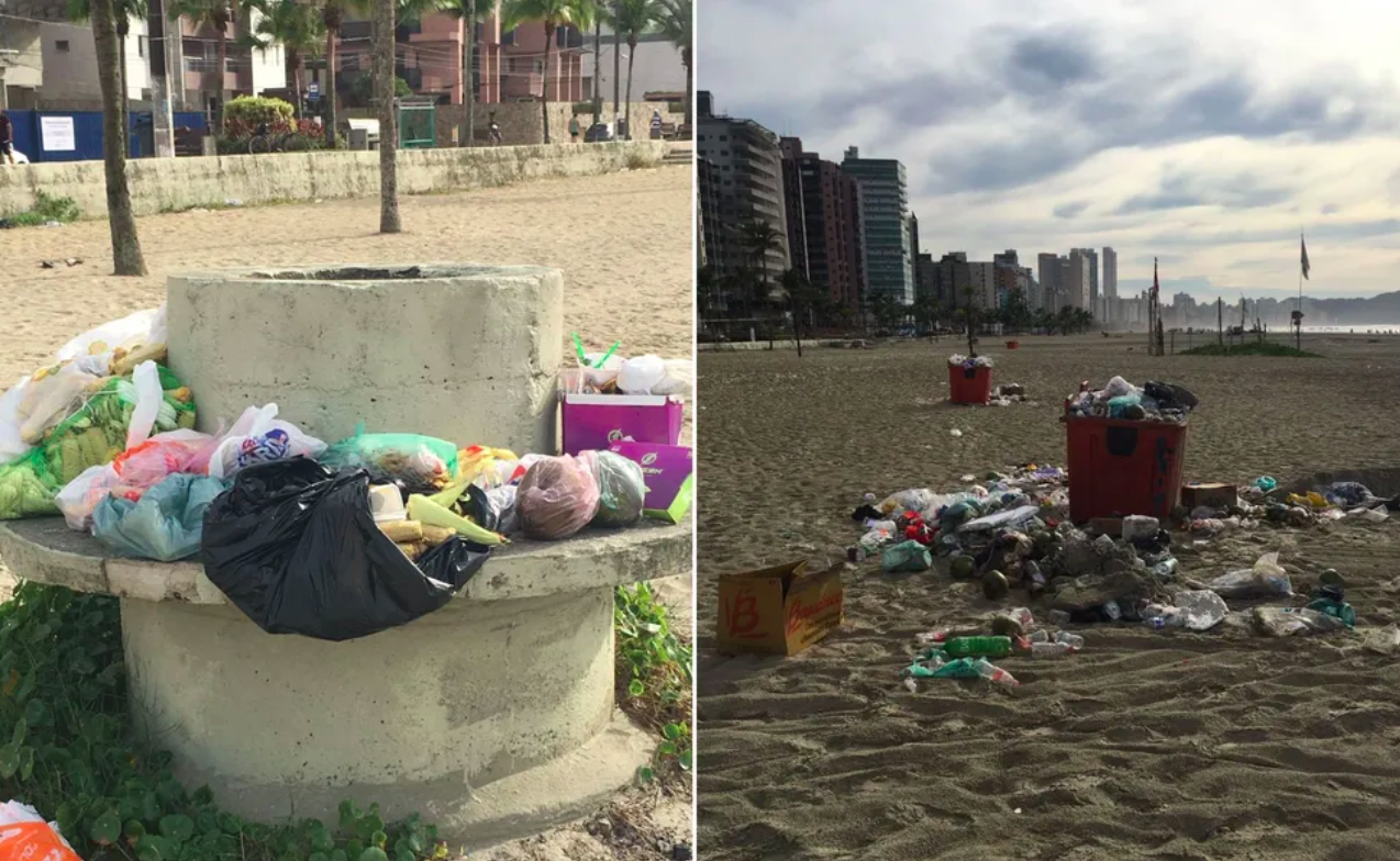 A praia da Guilhermina, em Praia Grande, na Baixada Santista, amanheceu repleta de lixo após o feriado da Proclamação da República, celebrado nesta quarta-feira (15). A situação chamou a atenção de moradores que frequentam o local nesta quinta-feira (16).