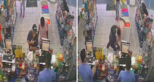 O idoso percebeu a ação do suspeito, o derrubou no chão e bateu nele. “Ninguém dava nada pelo senhor. Depois, ele pegou o bandido do chão e jogou em uma prateleira e bateu bem mais”, contou a funcionária Izabella Ferreira.