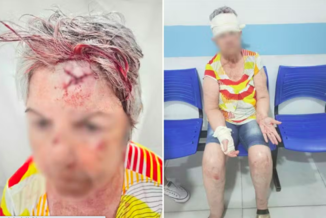 A filha dela acrescentou que, além dos seis pontos na cabeça, a idosa também levou dois pontos na mão direita – machucada ao ‘aparar’ a queda na calçada – e sofreu machucados nas pernas e braços.
